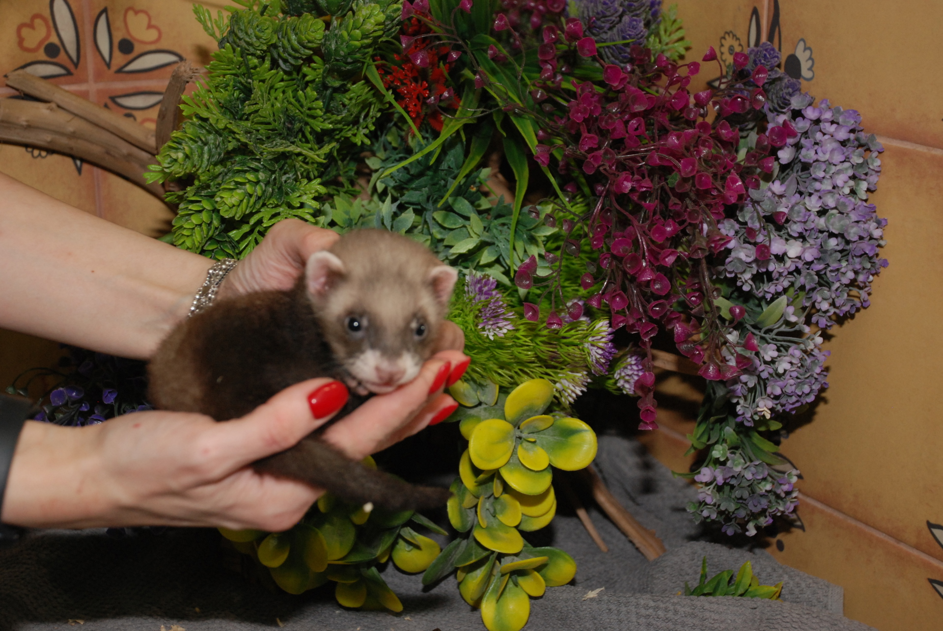 Хорька можно держать в квартире, но нужна просторная клетка или вольер минимум 90x60x70 см. Обязательны ежедневные прогулки по квартире под присмотром, гамак для сна, миски и туалет.